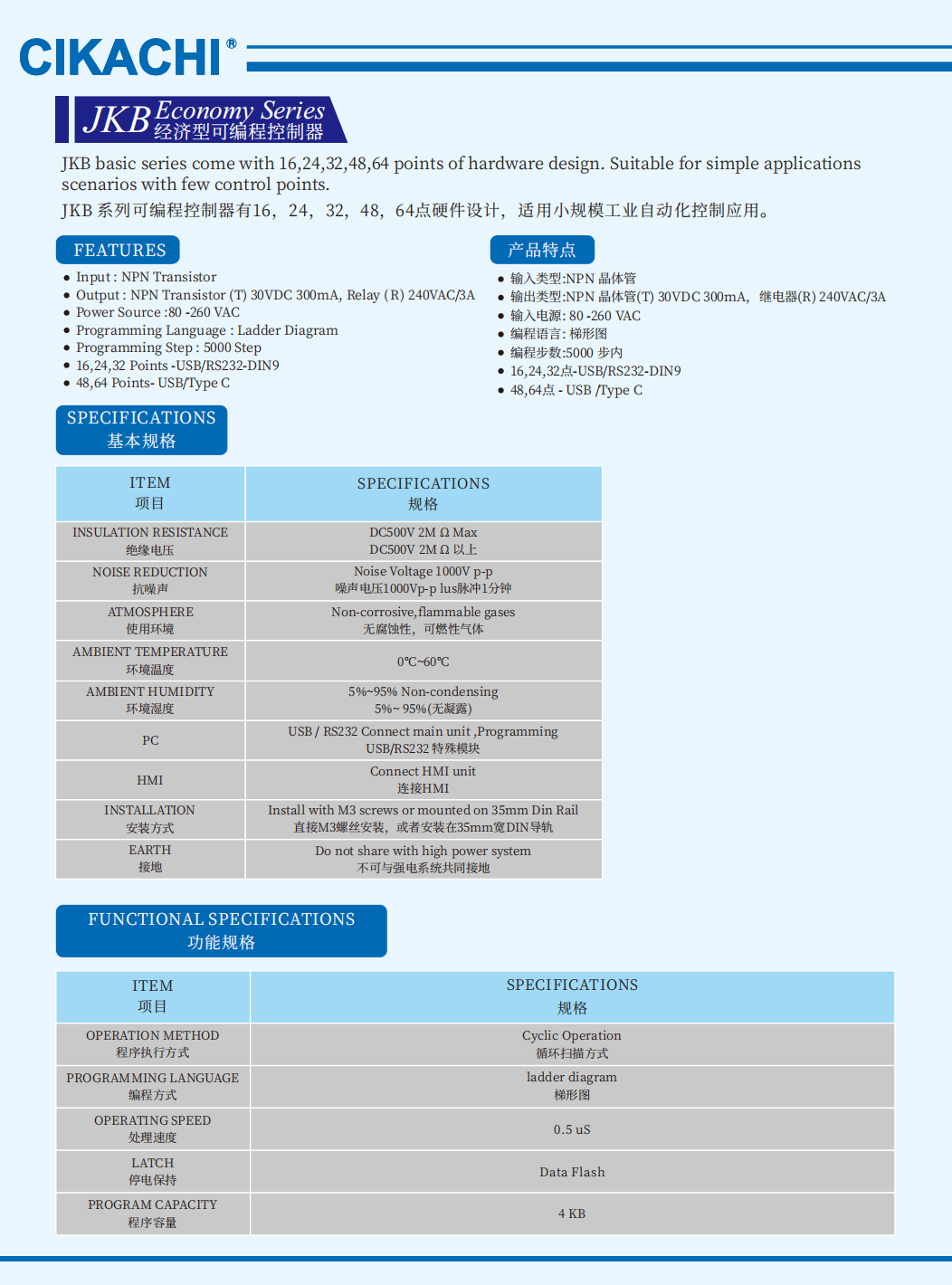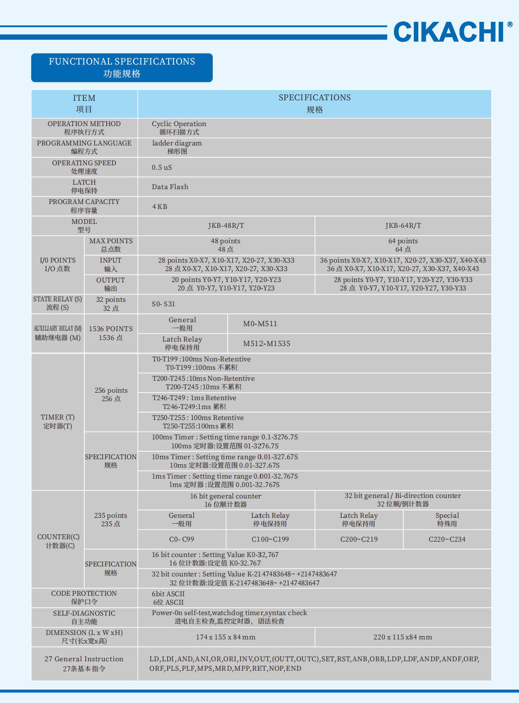 I/O Points : 48 points ( Input: 28 points ; Output: 20 points)